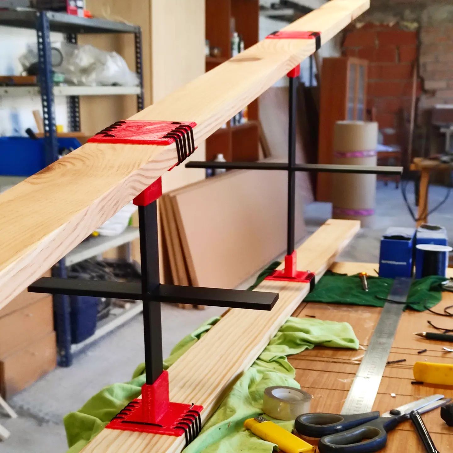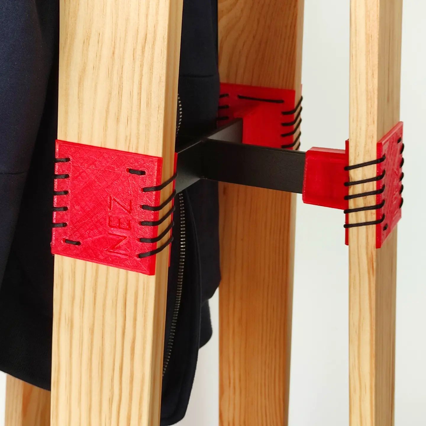 En madera natural, metal e impresión 3D en PLA de madera. Unido mediante costura.